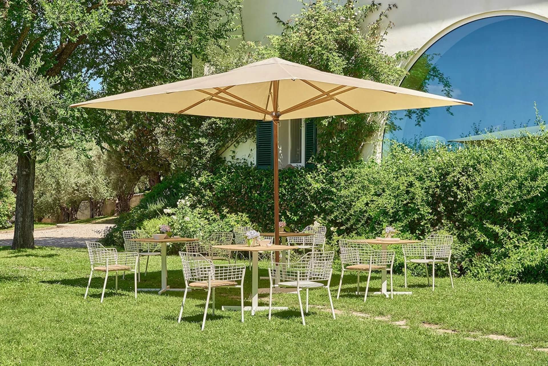 Così come negli spazi interni, anche all'aperto è possibile comunicare il proprio stile in termini di arredo, dando vita a composizioni arredative di grande valore estetico. Materiali di lunga durata e linee alla moda connotano questo modello di ombrelloni in legno di Emu, sinonimo di qualità ed eccellenza nel settore. Divertiti a progettare il tuo outdoor come fosse una stanza in più di casa, scopri da noi le soluzioni di Arredo Giardino dei principali brand in commercio. Oggigiorno, anche il giardino è considerato spazio domestico da attrezzare con cura, cosicché appaia vivibile e bello a vedersi. Questa proposta di Ombrellone Signoria di Emu ti permetterà di ricreare un comodo soggiorno all'aperto, mixando grandi doti di praticità e design.